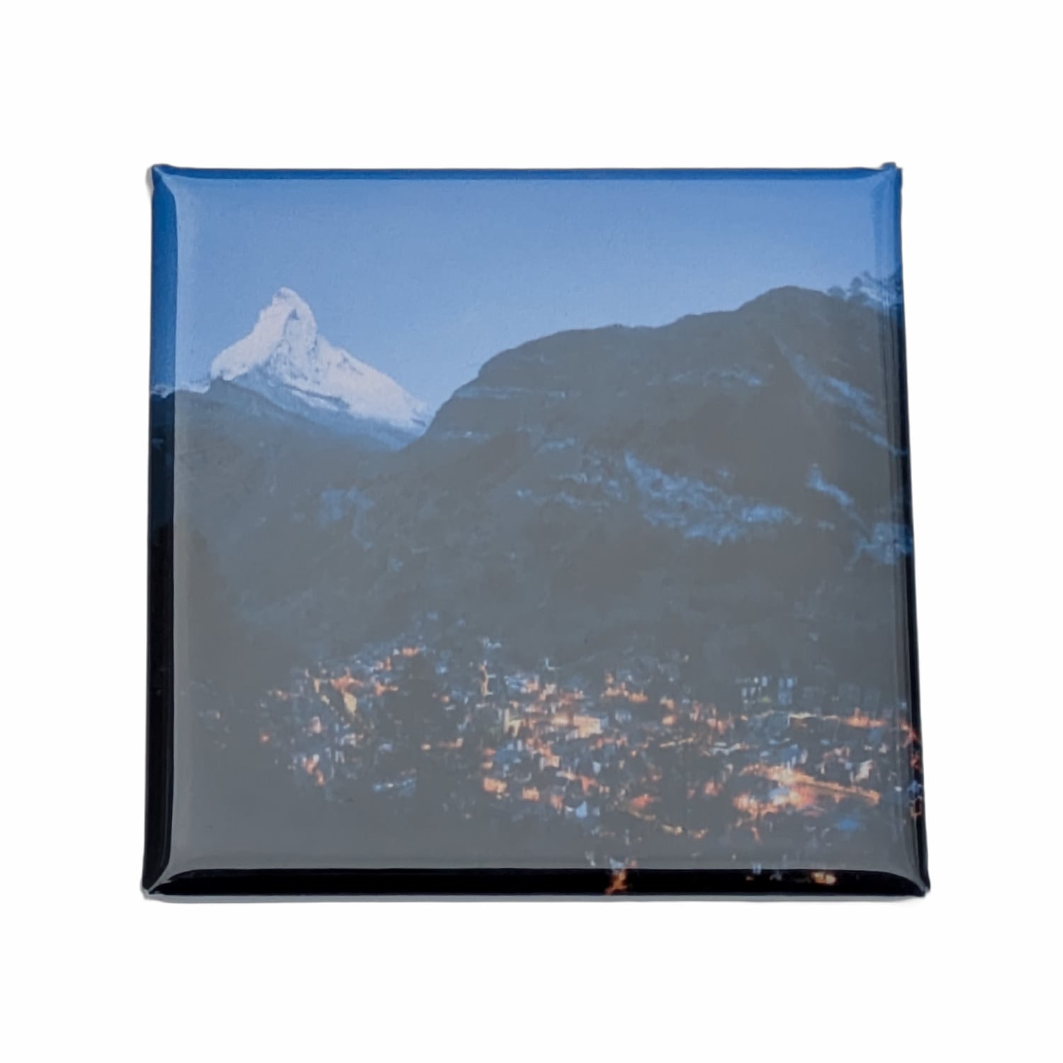 夜明け前に山に登り、マッターホルンをバックにツェルマットの夜景を撮りました。